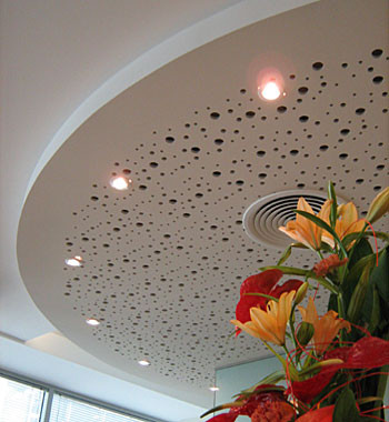 perforacji. Są one montowane, jako poszycie sufitów podwieszanych,