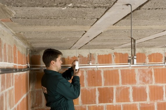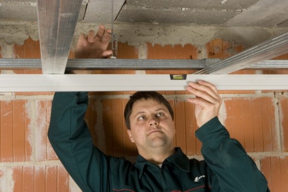 Prace przy montażu sufitu podwieszanego rozpoczynamy od wytrasowania powierzchni ścian, do których zakotwiony będzie profil przyścienny.