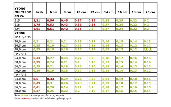 Współczynnik przenikalności cieplnej U uwzględnia parametry izolacyjne wszystkich materiałów, użytych do wznoszenia ściany: materiału izolacyjnego i nośnego ściany, ale także zaprawy murarskiej (w tym jej grubość) i materiałów mocujących izolację do powierzchni ściany (kleju, kołków, etc.).