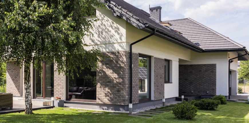 Cokół może być cofnięty, wysunięty lub zlicowany ze ścianą. Gdy jest on cofnięty o 2-3 cm od elewacji, tworzy się kapinos. Krople wody odrywają się od jego powierzchni i  zarówno ściana, jak i cokół nie są narażone na działanie wilgoci, dzięki czemu zazwyczaj przez lata nie wymagają remontu. Cokół tworzący ze ścianą jednolitą płaszczyznę wygląda często nie najlepiej – brak odcięcia w pasie przygruntowym sprawia bowiem, że budynek robi wrażenie zbyt głęboko osadzonego w  ziemi. Tak skomponowany detal jest często elementem bardzo nowoczesnych domów. To rozwiązanie sprawdzi się, gdy warstwa elewacyjna cokołu jest dopasowana do budowy ściany. Na przykład dwuwarstwowa wymaga wyrobów o wyjątkowej odporności na wilgoć oraz uszkodzenia mechaniczne, np. klinkieru czy elementów kamiennych lub betonowych. Jeśli więc zdecydowaliśmy się na budowę murów w technologii dwuwarstwowej i wykończenie ich tynkiem, to warto jednak osłonić strefę przyziemia bardziej odpornym materiałem. Inaczej nieosłonięta ściana w  przyziemiu może szybko ulec zniszczeniu.