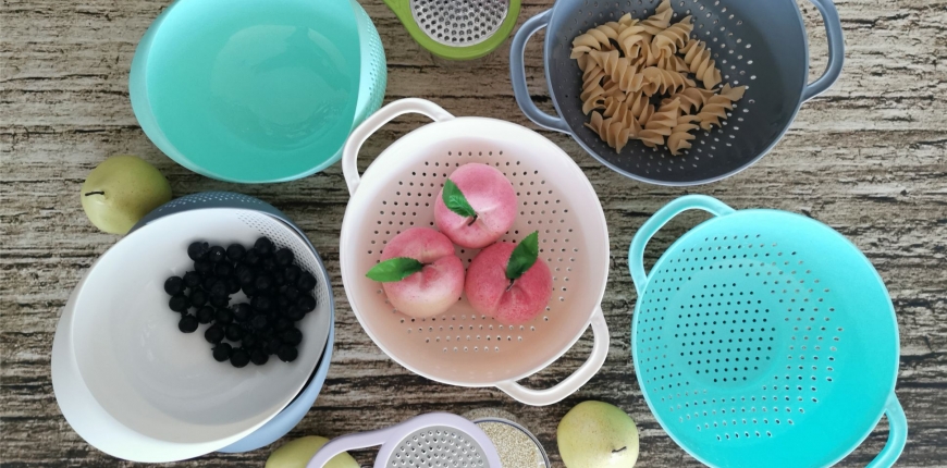 - POJEMNIKI Z OCIEKACZEM w dwóch pojemnościach 1,6L oraz 3,2L. Pojemnik ten to idealny kompromis pomiędzy przechowywaniem a zachowaniem świeżości warzyw czy owoców. Dwuczęściowy pojemnik pozwala na szybkie umycie owoców i warzyw, z jednoczesnym odsączaniem wody. Idealny do przechowywania żywności w lodówce.