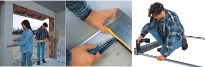 1. Przy pomocy poziomicy i szyny końcowej określamy "światło otwarcia" bramy. Pomiar ten wykonujemy na wys. 100cm od poziomu.