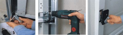 9. Boczne profile ramy przymocowujemy do ściany garażu przykręcając kątownik.