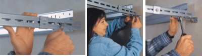 16. Całą ramę (profile górne i szynę końcową) przymocowujemy do ścian za pomocą wysuwanego profilu.