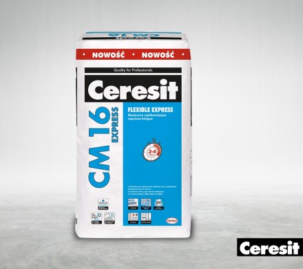 Ceresit CM 16 PRO to klej do zadań specjalnych, który można zastosować na zewnątrz i wewnątrz. Uzyskiwana elastyczność pozwala wykorzystać masę jako klej do płytek wielkoformatowych. Jego właściwości wykorzystywane są również przy wykańczaniu łazienek czy pomieszczeń mokrych. Klej znajduje zastosowanie przy powierzchniach o znacznym ruchu jak miejsca publiczne czy ciągi komunikacyjne.